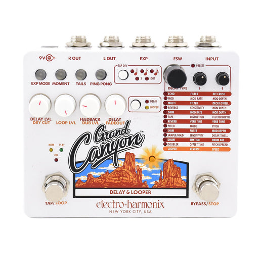 Electro HarmonixThe Grand Canyon is EHX’s most advanced multifunction delay and looper pedal. It’s equipped with 12 effect types plus a fully featured looper capab...