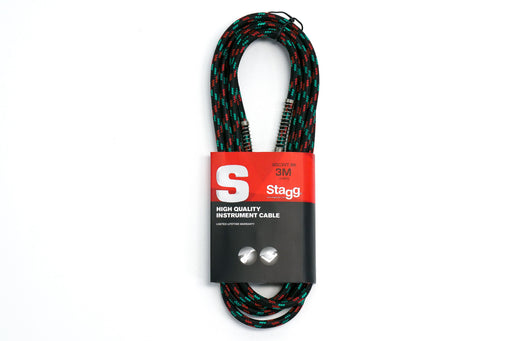 StaggStagg SGC3VT BK S-Series 1/4 Inch Black Vintweed Instrument Cable - 10 Feet Black Vintweed with Red and Green 10 Feet (3 meters) 1/4 Inch to 1/4 I...