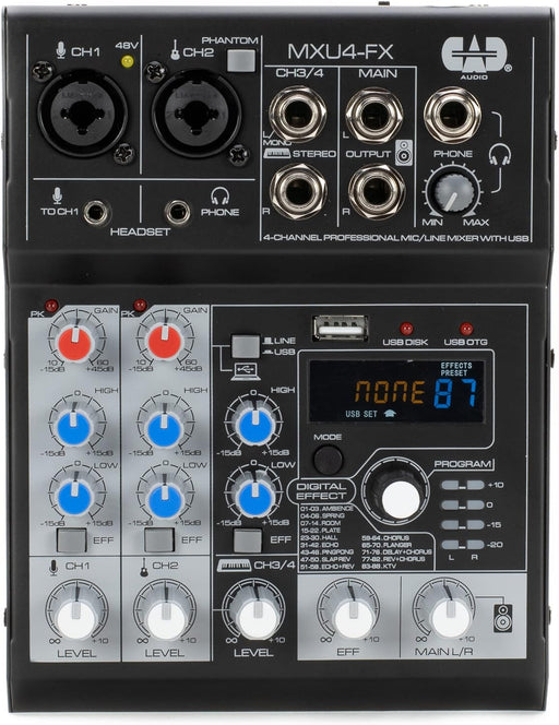 CAD Audio MXU4-FX 4 Channel Mixer with USB Interface and Digital Effects , Black